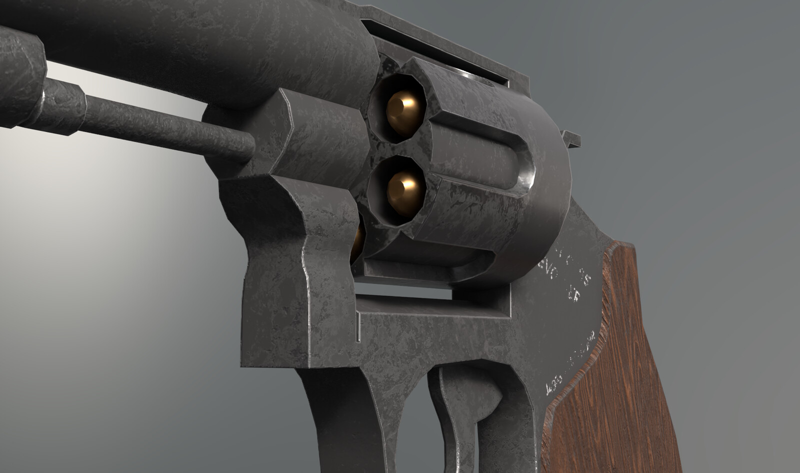 This 3D model of a highly detailed revolver was created using Blender for modeling and Substance Painter for texturing. Designed specifically for use in first-person shooter (FPS) games, this revolver boasts an intricate, realistic design with a focus on precision and accuracy in both form and function. The model features a wooden crafted grip and visible wear on the metal surfaces to enhance realism and immersion.